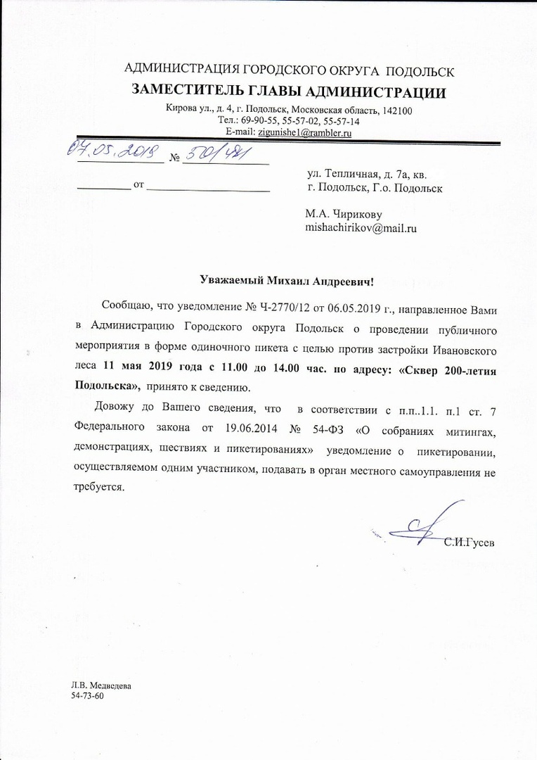 Есть информация, что планируются застроить Ивановский лес (Парковка, асфальт, административное здание и прочее), поэтому 11 мая с 11 00 до 14 00 часов пройдет одиночный пикет в сквере "200 летия Подольску" по данной проблеме.