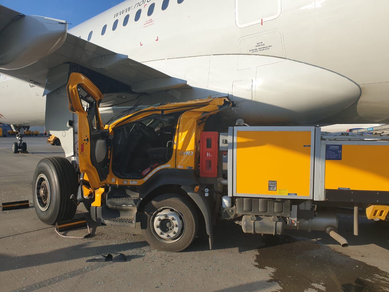 Сегодня в ШРМ грузовик в самолёт врезался.