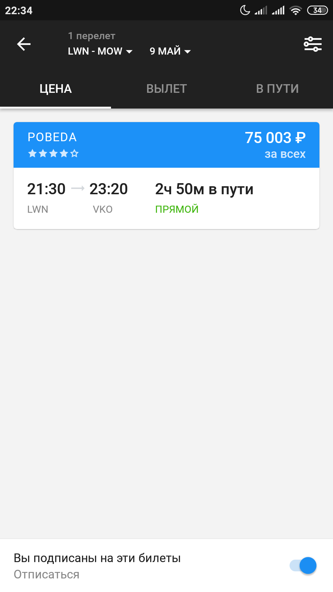 Совсем наш любимый лоукостер шибанулся. Победа жгет. Три дня назад билет на двоих стоил 14 тыщ, сегодня вечером 75