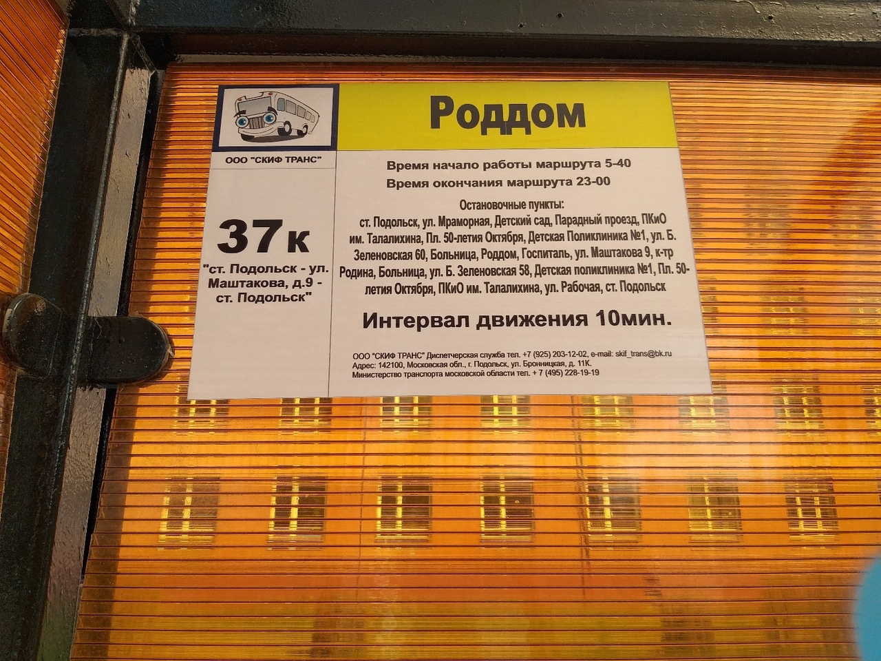 P.S. Когда 61-й маршрут отошёл к Домтрансавто, в расписание внесли изменения.seryi77 писал(а): ↑12 май 2019 19:39 Расскажу про свой опыт поездки на маршруте №37К. Решил вчера дождаться и проехаться на новом маршруте. Ждал его у ДК Лепсе. Маршрутка приехала в 12.06, в салоне было 2 человека. Воспользовавшись отсутствием большого числа пассажиров, решил поговорить с водителем. В данное время, маршрут полностью убыточен. В начале на маршруте выпускали 4 машины, сейчас по будням 3, по выходным должно быть так же 3, но чаще бывает 2. Поостановочного расписания нет, но от ст.Подольск маршрутки отправляются по будням в 00 минут, 20 минут и 40 минут каждого часа. Если две машины, то в 00 минут и 30 минут каждого часа.