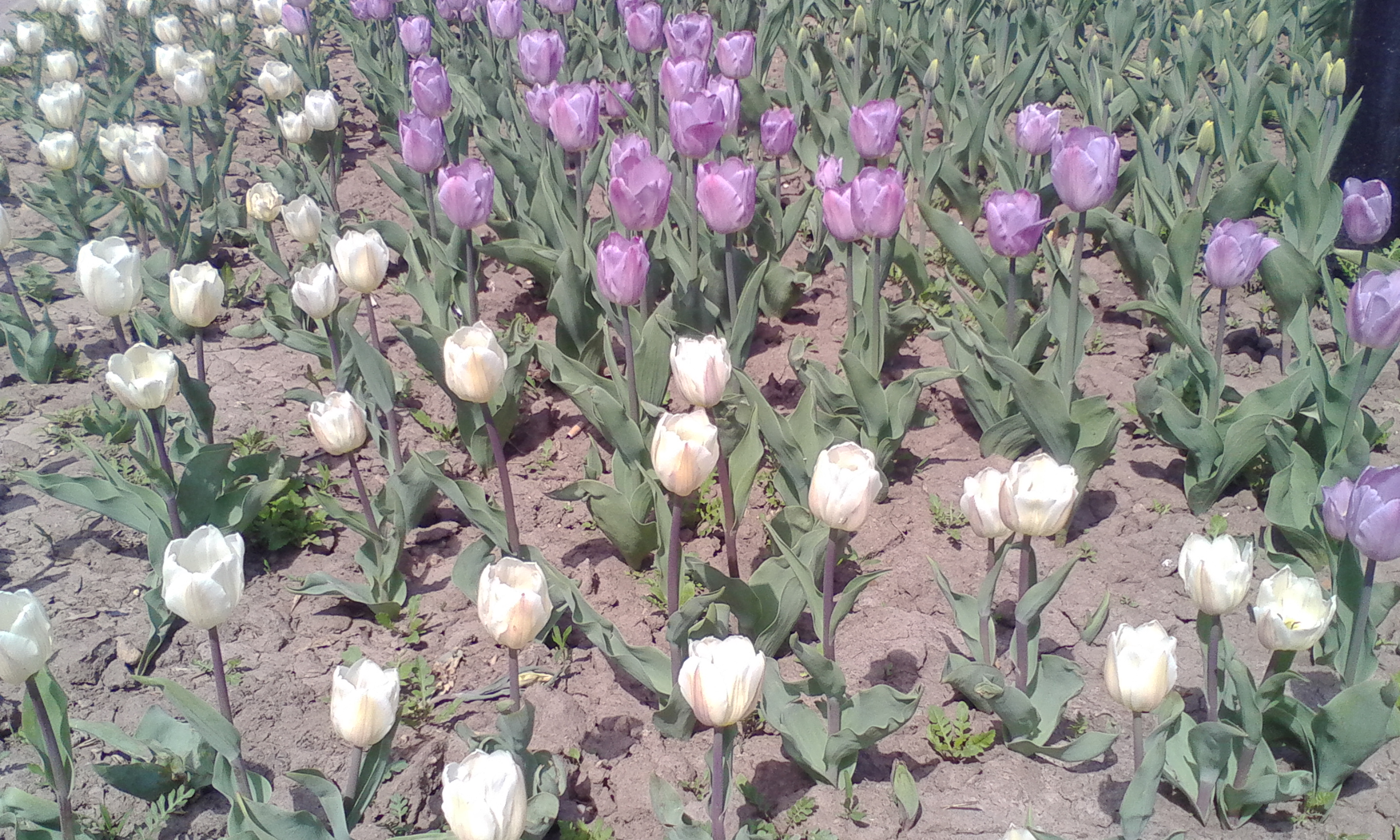 У всех деревьев обрезали нижние ветки, почти все побелили.