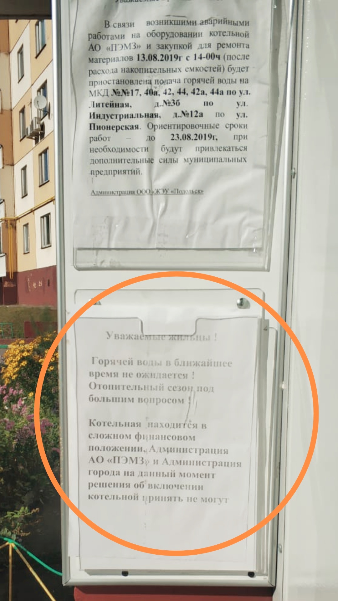 Но кто обращает внимания на такие мелочи... И плевать, что воды уже не было вечером 22-го, а объявление от имени котельной (не МУЖРП и не Эврики) было вывешено на подъезде только 23-го.