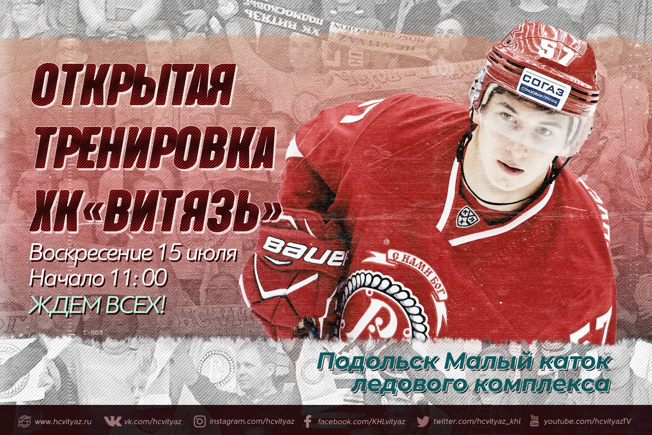 Приглашаем всех болельщиков в воскресенье, 15 июля встретиться с нашими хоккеистами на Открытой тренировке, пообщаться, задать блиц-вопросы, взять автографы, сфотографироваться, поучаствовать в конкурсах для юных болельщиков и просто насладиться общением с «Витязями».