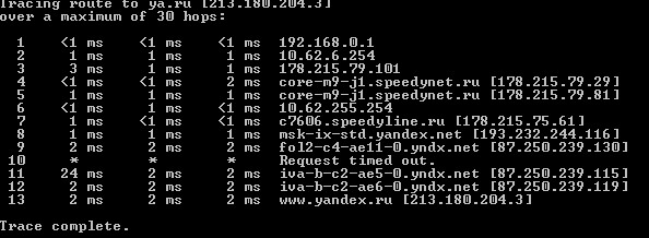 Запусти плиз команду tracert ya.ru (в CMD), посмотри по этому же маршруту пойдет (хосты).