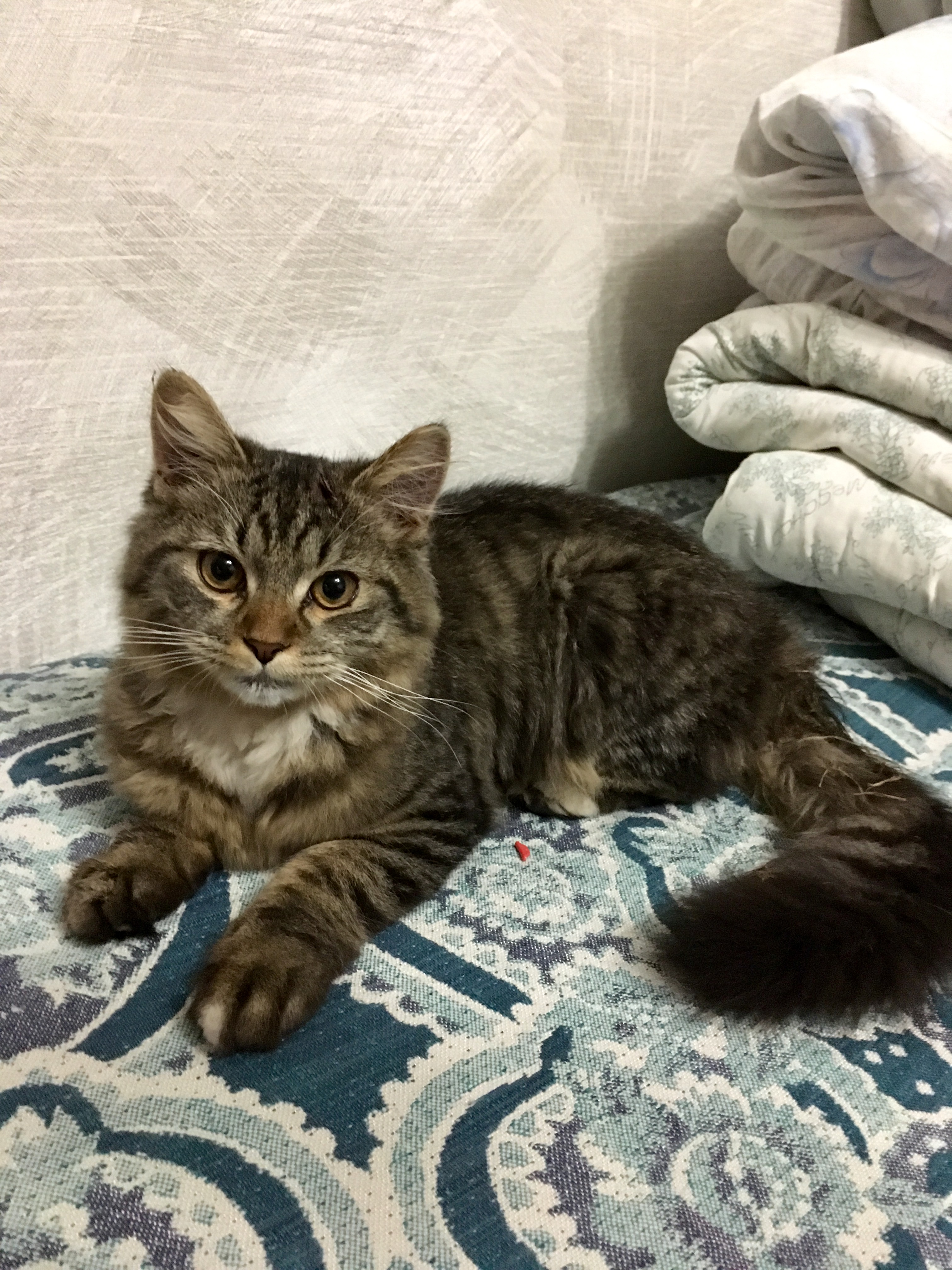 На улице Народная возле магазина «Пятерочка» найден кот. Молодой, очень пушистый. Котик дружелюбный, подходил ко всем прохожим, на улице явно совсем недавно. Очень надеемся найти хозяина! 89175152577 Мария