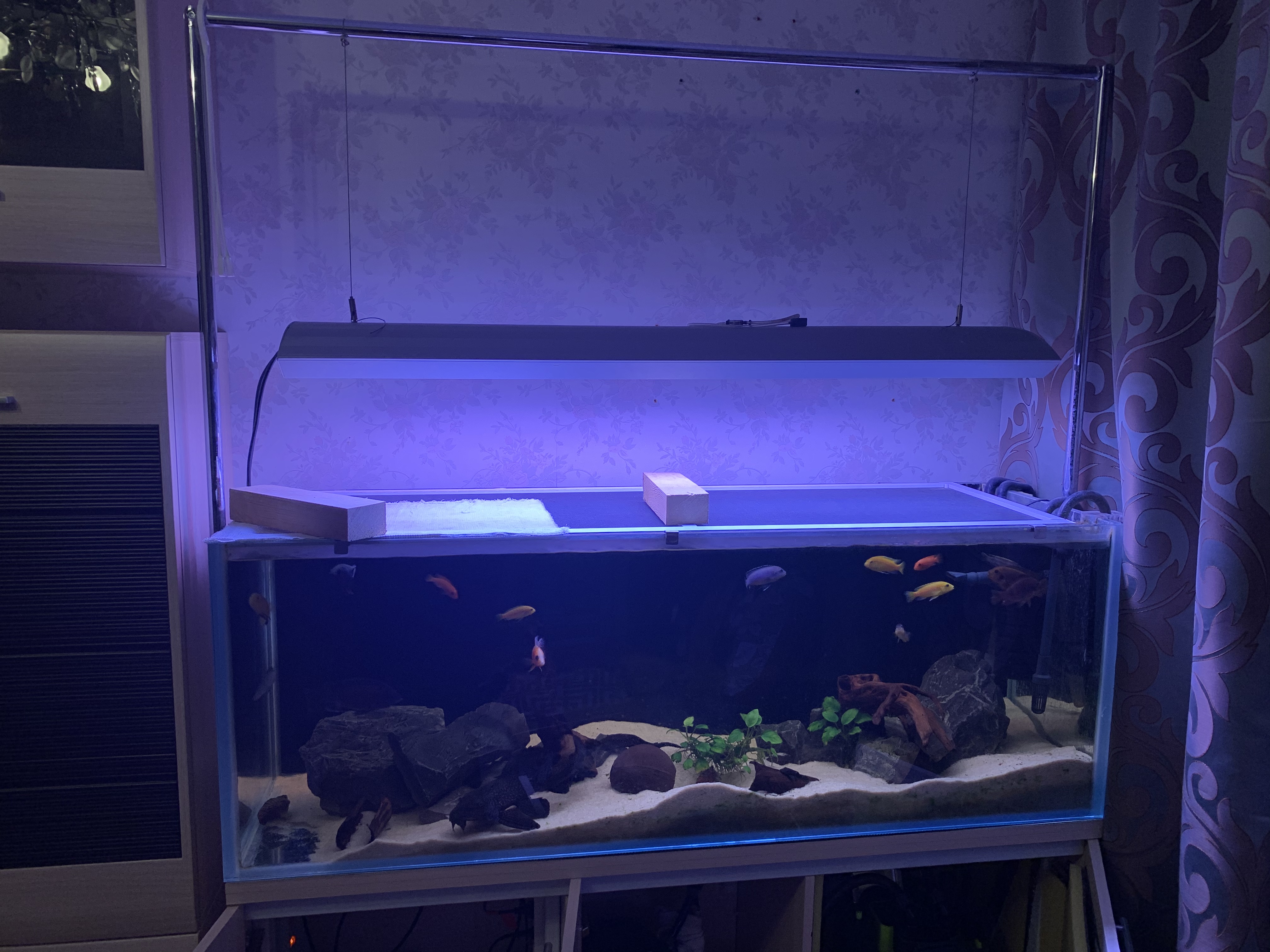 Аквариум делался на заказ под мои размеры, открытый, толщина стекла 15 мм, длинна 140 см, ширина 45, высота 50. Продаётся одним лотом(желательно) . Нагреватель проточный. Светильник 1200мм, 2мг -150вт, 2лл-54вт. Два внешника, эхейм 2217 и прайм СО2 4000. Сначала был травник, под него и выбиралось оборудование. Сейчас цихлиды. Сейчас аквариум немного запустил, налёт от воды и немного зелени, но при желании все убирается. Тумба самодельная, сам варил каркас из профильной трубы , после заказывал панели на мебельной фабрике по своим размерам. Столешница двойная, так же как и низ. В довесок могу дать 50 кг грунта для травника(пропант).Возникнут вопросы спрашивайте. Территориально Столбовая, Чеховский район. Цена 30 000 р НЕ АКТУАЛЬНО !!! Объявление снимаю.
