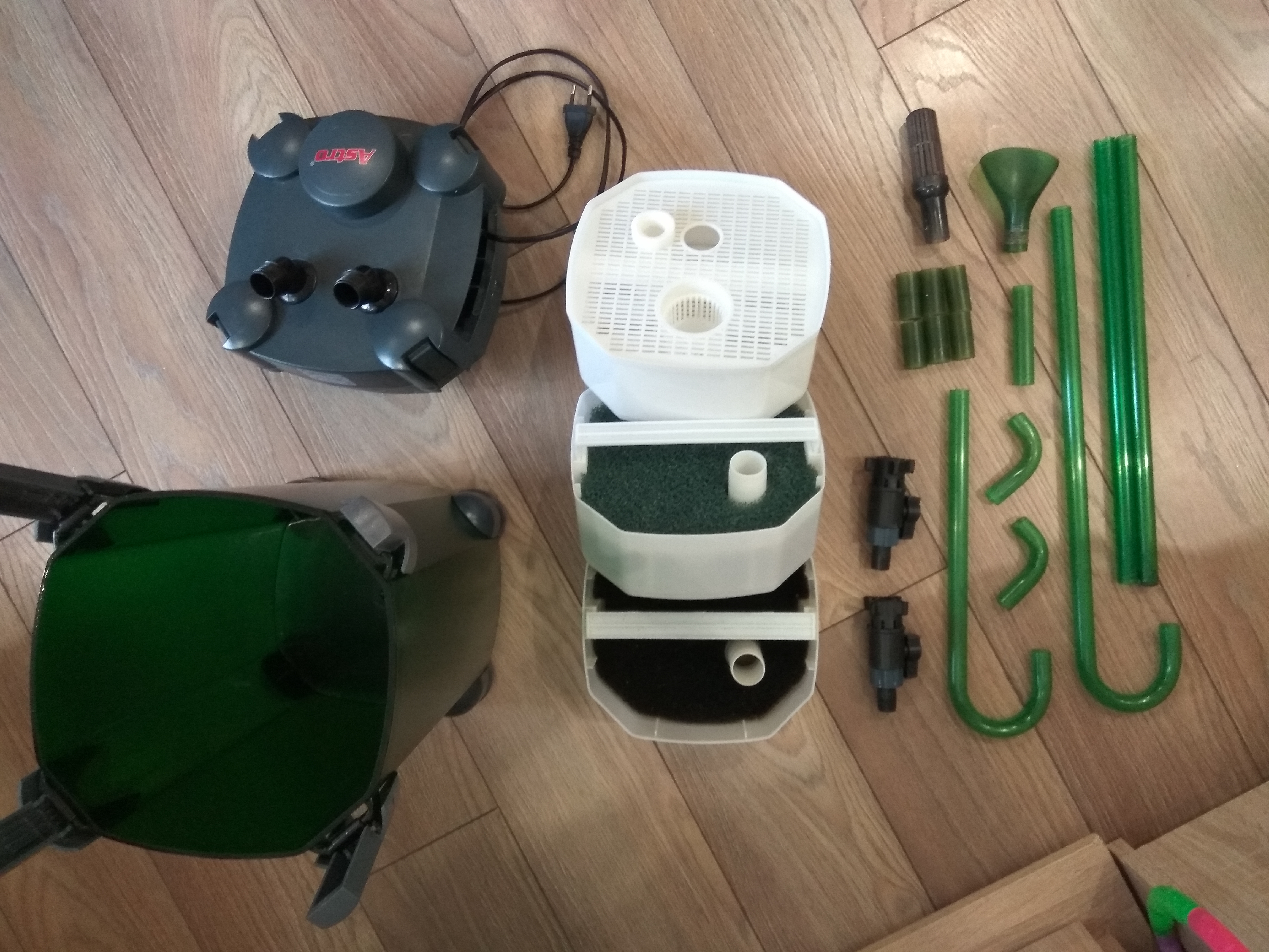 5. Внешний фильтр ASTRO 2212, 1300л/ч (это, конечно, китайское враньё, но около 900-1000 л/ч он выдаёт). Фильтр полностью рабочий, полный комплект, очень тихий. Сейчас стоит Эхейм и этот хвалёный Эхейм ночью слышно очень хорошо. Китаец работал практически бесшумно. Установлен новым импиллер, новая керамическая ось и уплотнители оси. Старый импиллер тоже рабочий просто треснул, отдам в качестве запасного - 4000р