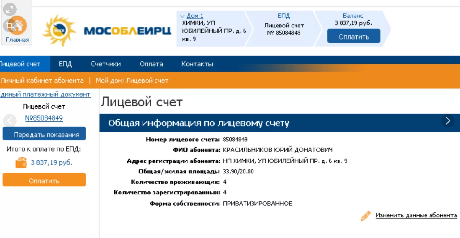 Того ЛК, который приведен на скрине уже не существует давно, сейчас ЕЛК, объединенный Мососэнергосбыт+Мособлеирц. Лично у меня ЕЛК работает для Чеховской квартиры и у родителей в Серпухове. Тут в Подольске другой ЛК, но тоже нормальный. Счетчики передаются, платежки есть, оплата без процентов. Странно почему отдельный, но это неважно. Еще интересно, что электроэнергия давно уже в единой квитанции от ЕИРЦ, то есть лицевым счетом энергосбыта можно не пользоваться, а Подольске оно отдельно до сих пор.