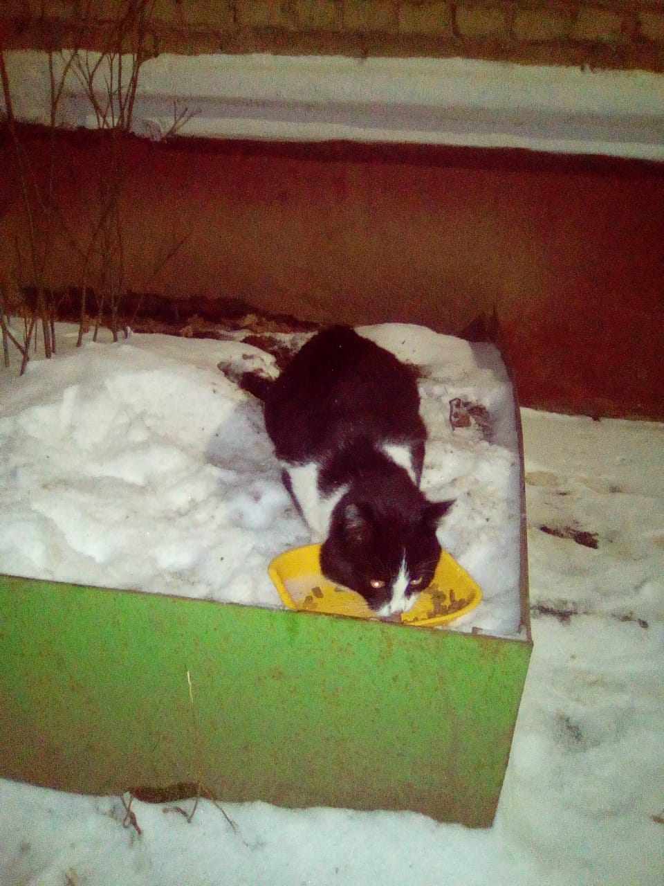 Всем здравствуйте! Во дворе в районе Высотной (Подольск), третий день под машинами сидит большой черно-белый, явно домашний кот! В подъезд не заходит. Оооочень голодный! Ест за раз по 4 пакетика. Может его все таки кто-то ищет! 8-926-593-69-00 Ирина