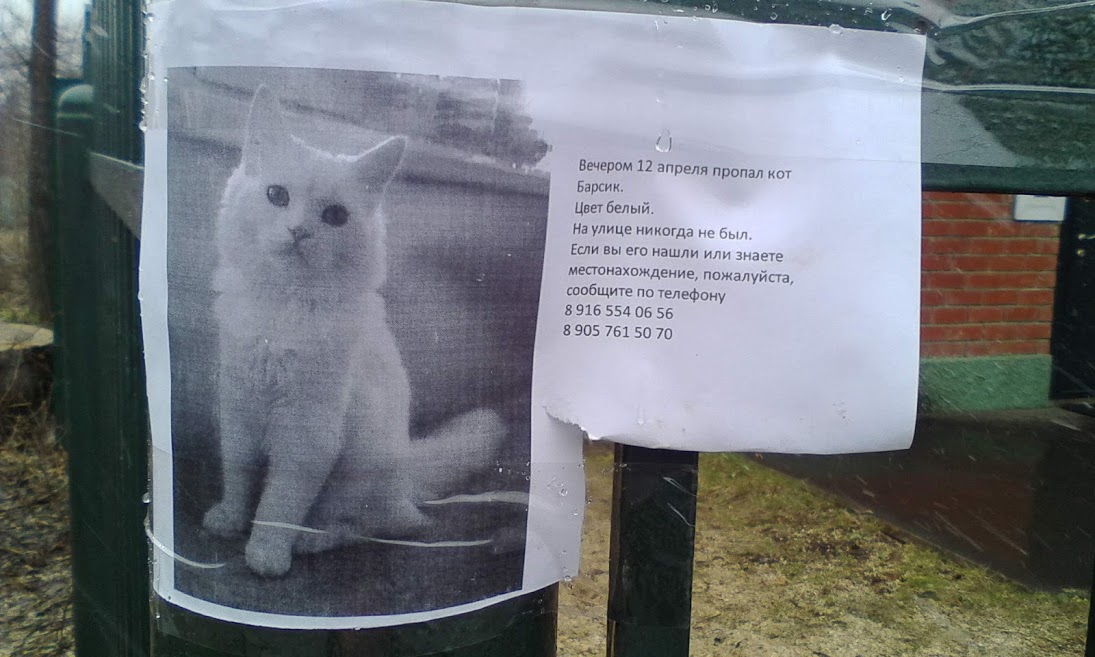 Активней пользуйтесь соцсетями. Недавно мама нашла возле работы красивого котёнка, видно, что домашнего. Я взял на передержку. Разместил в нескольких группах.