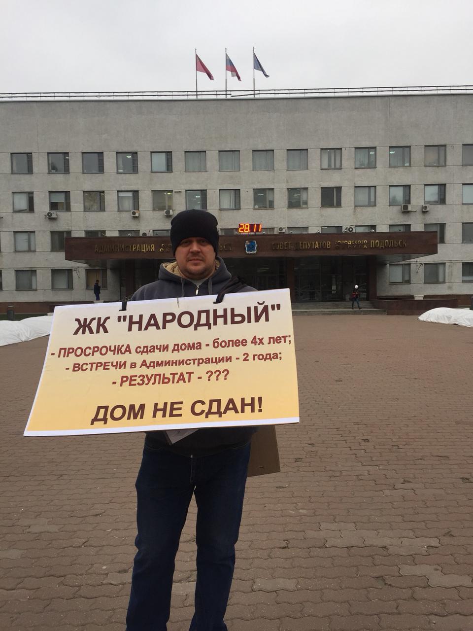 28 ноября 2019 года. Проходит одиночный пикет возле администрации г.о. Подольск.