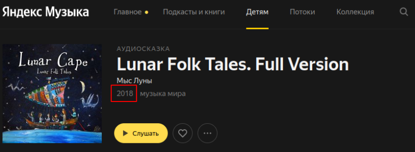 В январе 2019 года в издательстве ArtBeat Music вышел альбом с полной версией «Лунных Народных Сказок» московской инструментальной группы «Мыс Луны».