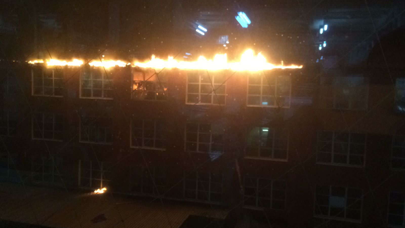Находится в противоположном здании было уже опасно, ушли от туда (стекла на против в здании реально были горячими). Е,сть ещё видео и днём и вечером.