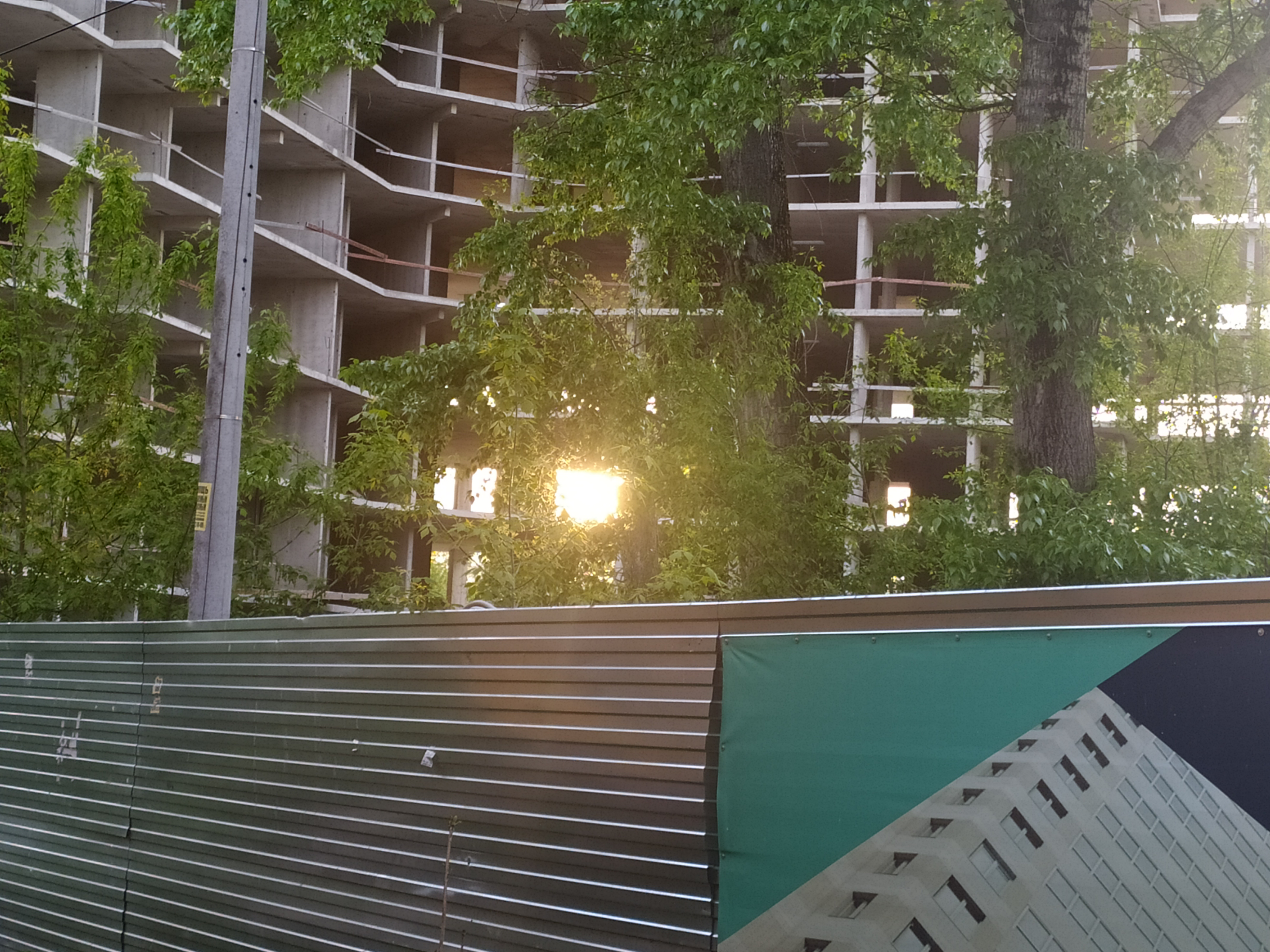 На стройке небольшой движ, рабочие убираются. Готовят площадку. Продолжаю наблюдение :D