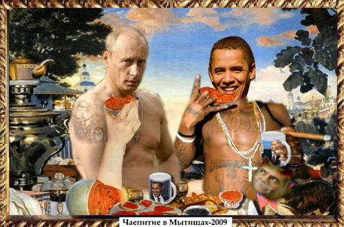 http://www.youtube.com/watch?v=bkQ1AIxoDh4Прекрасно провел время американский президент в гостях у Путина. Ел типичную русскую еду: икру, очевидно, ложками, белугу.