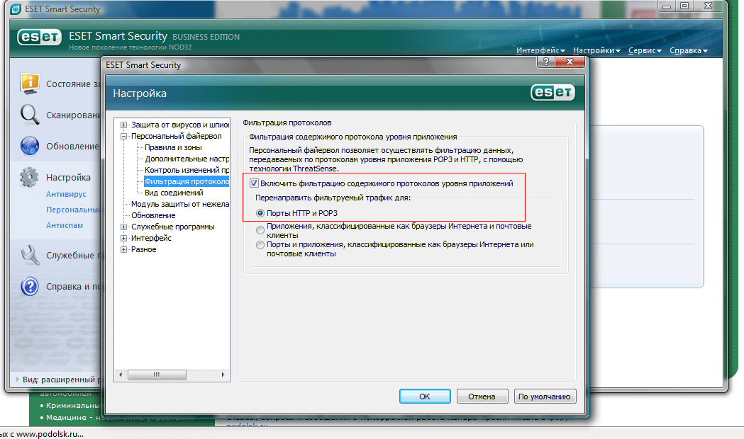 1.2 настроить firewall, как настроить NOD32 3х см. рисунок ниже