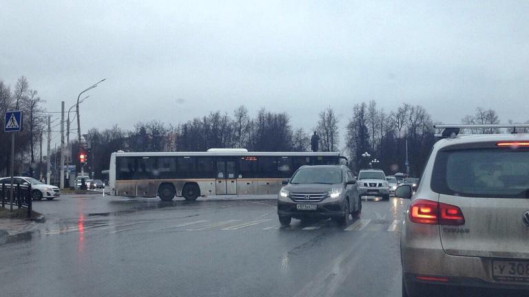 шевроле, наверное, хотел из среднего направо или прямо, как частенько там умники ездят, а у автобуса хрен проскочишь