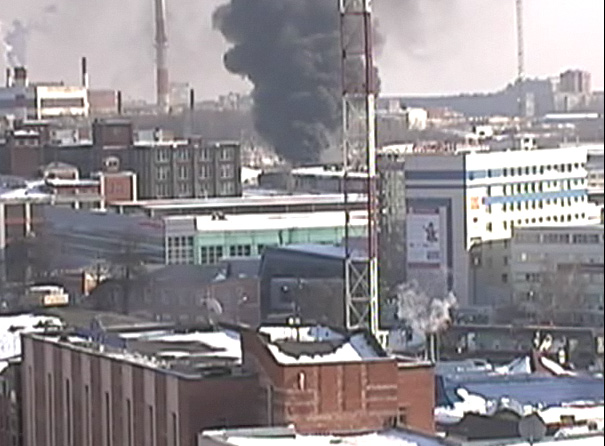 А я из окна с Б.Серпуховской сфоткал:Gusar писал(а):на Зингере пожар сильный, черный дым до небес, камеру повернули