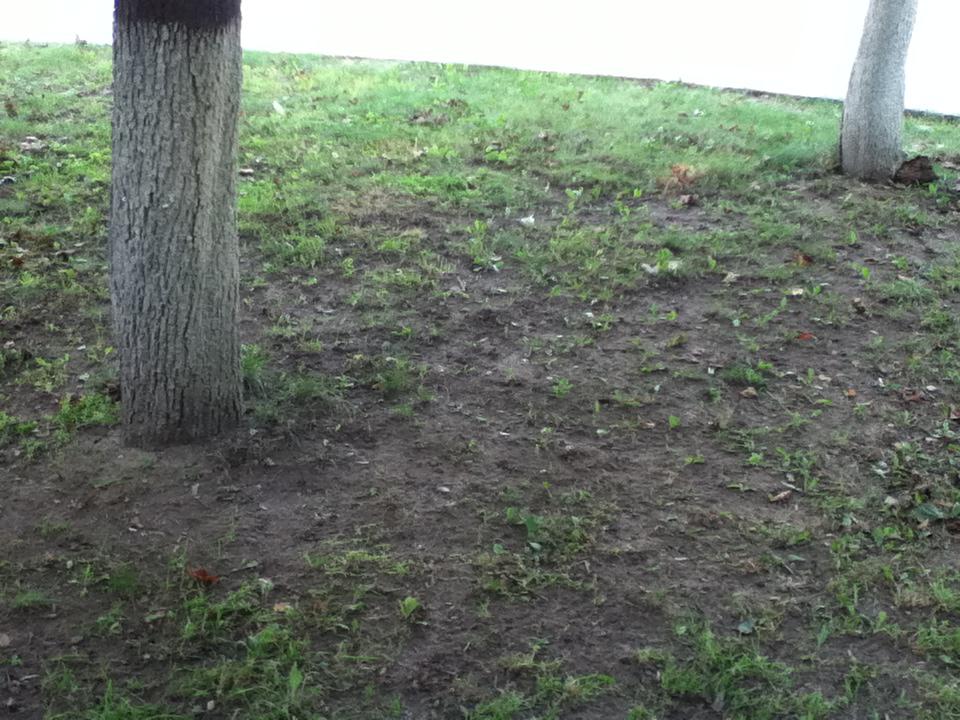 Вот наша дворовая травка - муравка) Это чистый эксперимент - было интересно на какую высоту вырастает газонная трава за сезон при условии, что её не будут косить. Травостой, посаженный нами, огорожен камнями. Спустя четыре месяца после посадки высота травы не превышает 15 см! Рядом проплешины на земле - таков результат постоянных покосов, осуществляемых коммунальными службами. .
