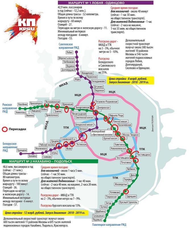 Речь идет о новой ветке наземного метро, соединяющей радиальные железнодорожные направления, которая может появиться в Москве к концу 2018 — началу 2019 года. Проект был представлен президенту РФ Владимиру Путину в среду, и глава государства его поддержал. Глава РЖД Олег Белозеров сообщил в четверг, что проект нового наземного метро в Москве, по оценкам, потребует по 25-30 миллиардов рублей из средств РЖД и города.