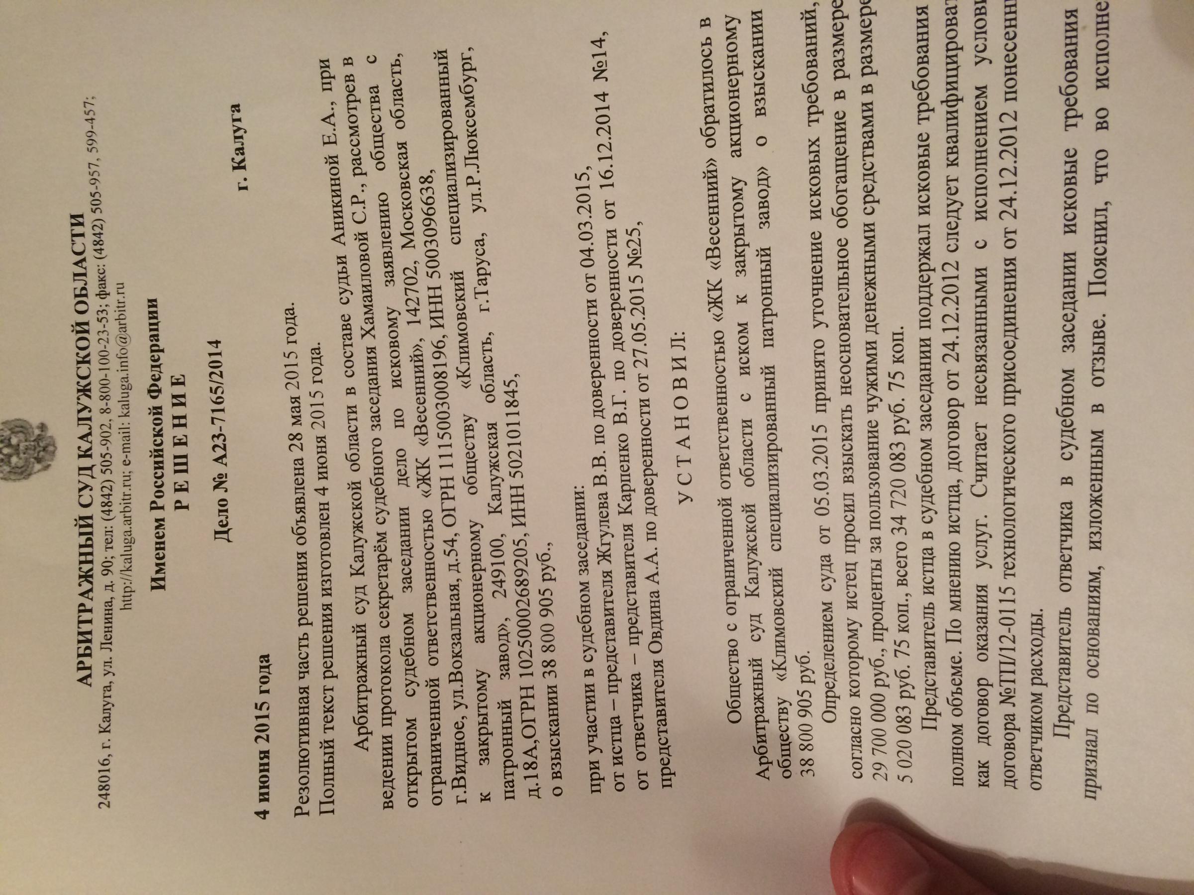 на 408 странице выкладывалось письмо, где водоканал пишет, что выполнил все работы согласно договору