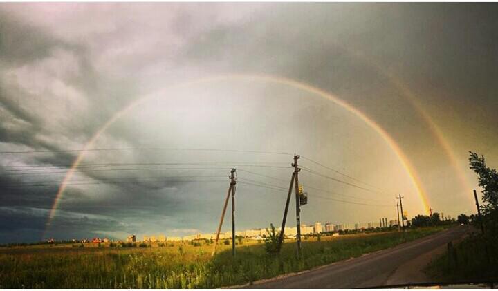 Маска Крокодила писал(а):Ездил вечером в сторону Серпухова - совершенно потрясающая радуга наблюдалась! Точнее, две штуки сразу. То одна ярче, то другая. Временами было ощущение, что вот-вот в нее въедешь или въехал уже. По-моему, никогда не видел живьем столь яркой и красочной радуги. Красивейшее зрелище!