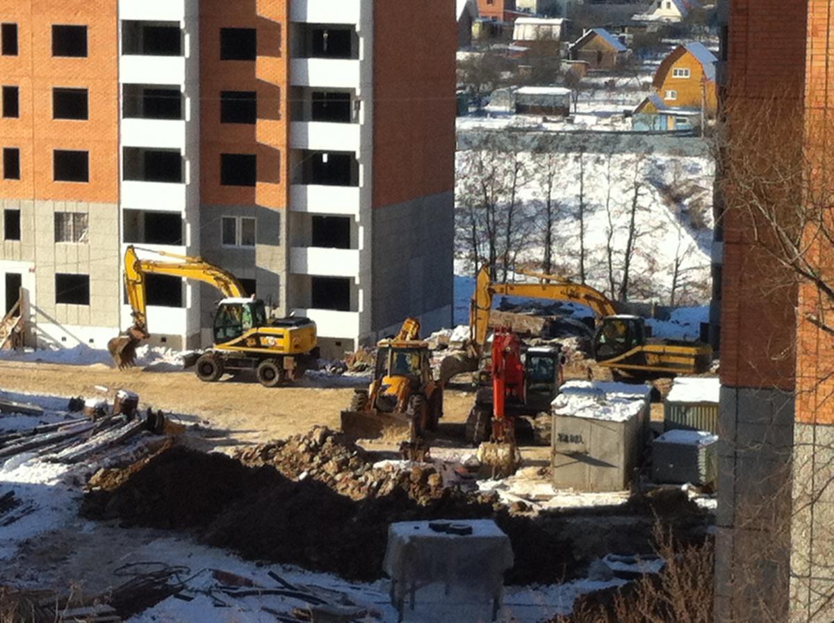 Был 23.01.2014 в четверг около 14.00 плюс минус. Возле 2-го дома, на фундаментах под крыльцо, делали гидроизоляцию. Возле 3-го экскаватор что-то копал. В общей сложности на площадке видели порядка 10 человек и вне площадки трое вручную ломиками и лопатами что-то для кого-то копали.