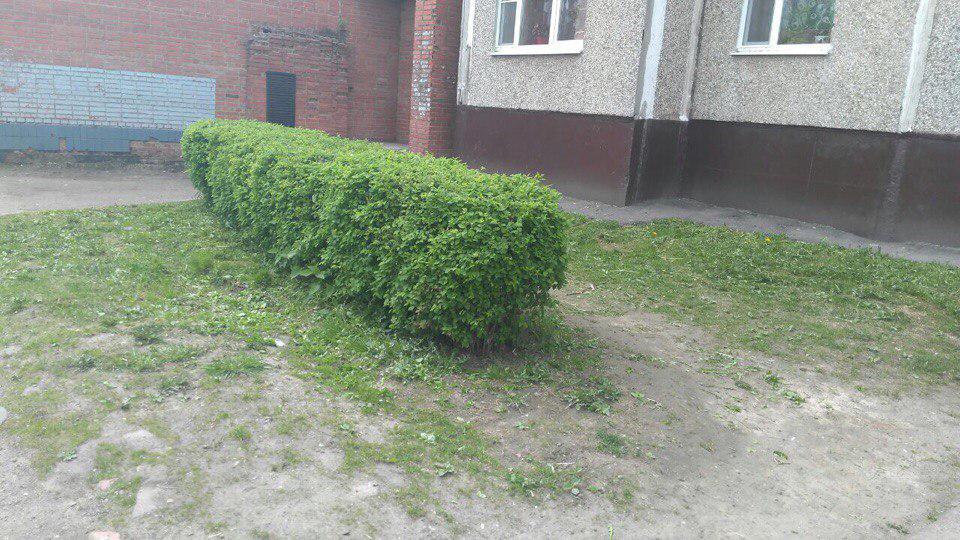 Думаю, никто не посчитает вот этот одиночно стоящий кустик оправданно подстриженным. Это обрезание кустарников ради чего? Ради ( не побоюсь этого слова) кра-со-ты? Ради безопастности ?