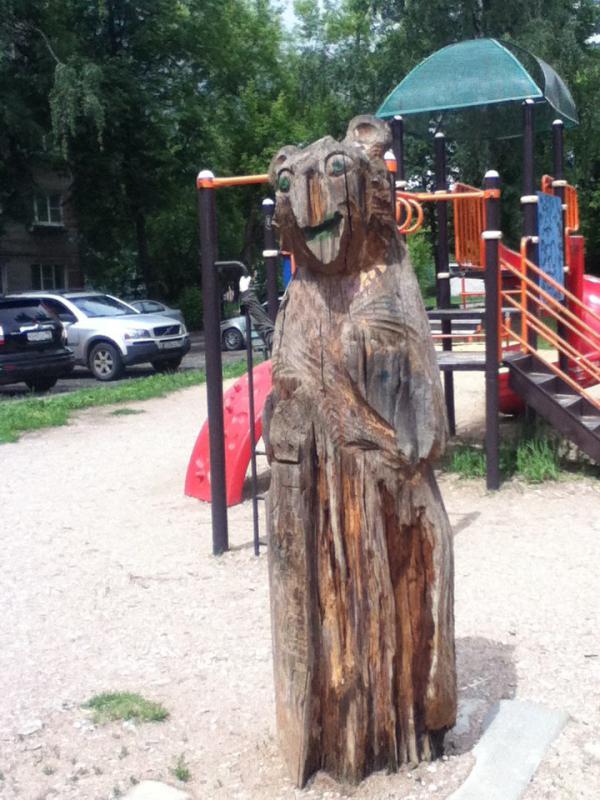 В Климовске, на Октябрьской площади, на детской площадке есть свой прекрасный медведь.