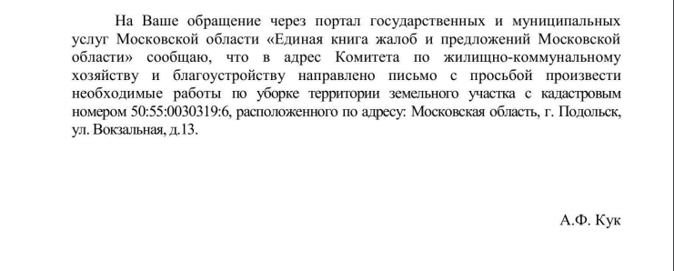 Ни то что про срок ничего не говорится, а вообще ничего конкретного в ответе на второе обращение про навалы мусора на заброшенном пустыре.