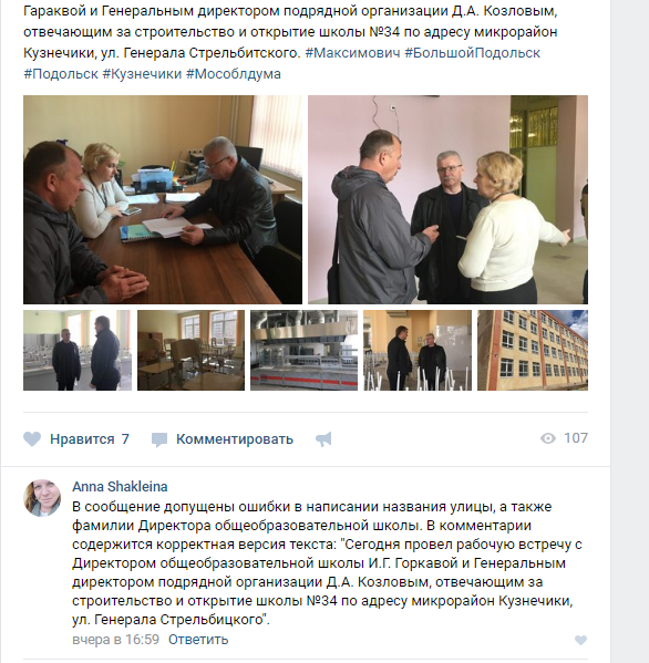 А мою ремарку о том, что директор и генеральный директор пишутся с прописной, со страницы нашего депутата удалили.