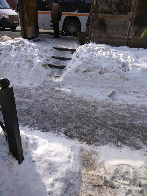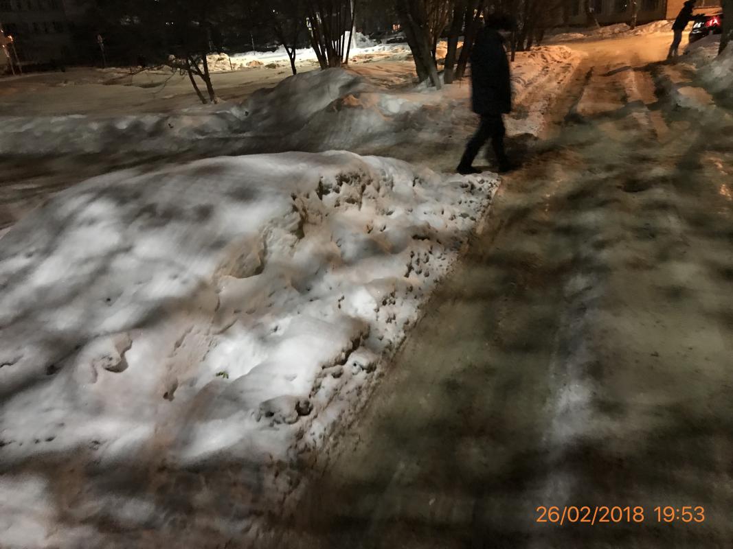 Зачем мне говорить про Москву, там слишком много рук и карманов, за всеми не проследишь... В Подольске с этим проще же должно быть? Я элементарного понять не могу: почему один конкретный тротуар у социально значимого объекта не могут нормально чистить, вывозить с него снег при том факте, что снегосвалка прямо через дорогу? Если в техническом задании и контракте это необходимое условие, почему никак нельзя проконтролировать его соблюдение? Через три недели после снегопада тротуар в снегу и льду.