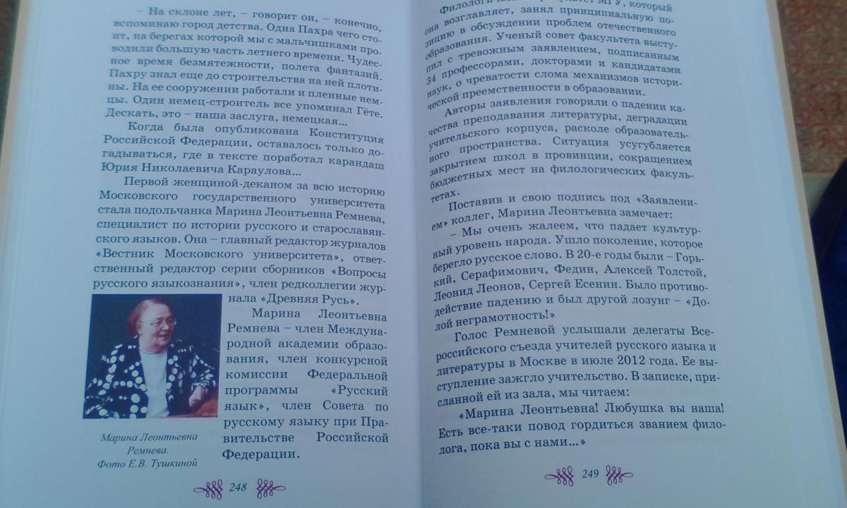 В конце книги про уроженцев Подольска. Про директора Института русского языка, корректора Конституции РФ Караулова и специалиста по русскому языку Ремневу.