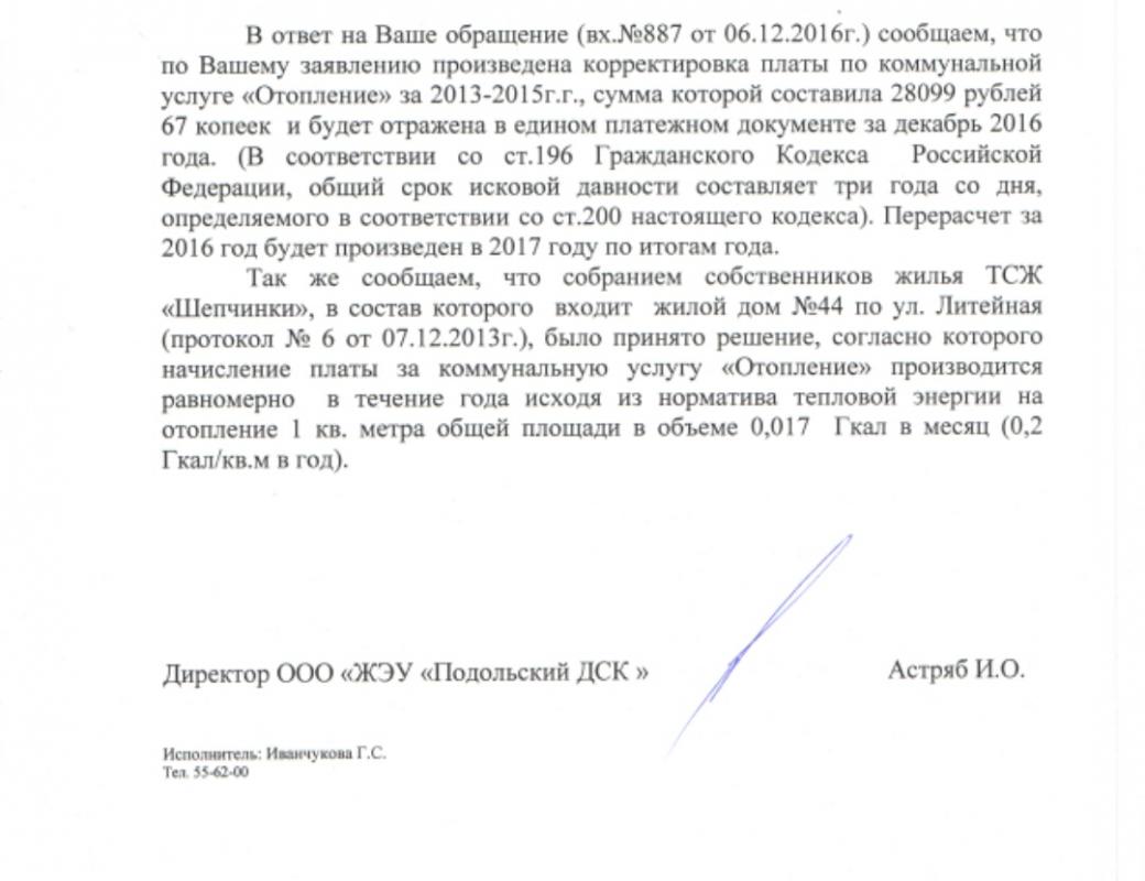 летучка писал(а): управляющая компания из Подольска подняла до норматива температуру горячей воды, подаваемой жителям многоквартирного дома. За оказание некачественной коммунальной услуги ООО «ЖЭУ «Подольский ДСК» пришлось вернуть жителям часть платежей, а также этой компании грозит штраф в четверть миллиона рублей.