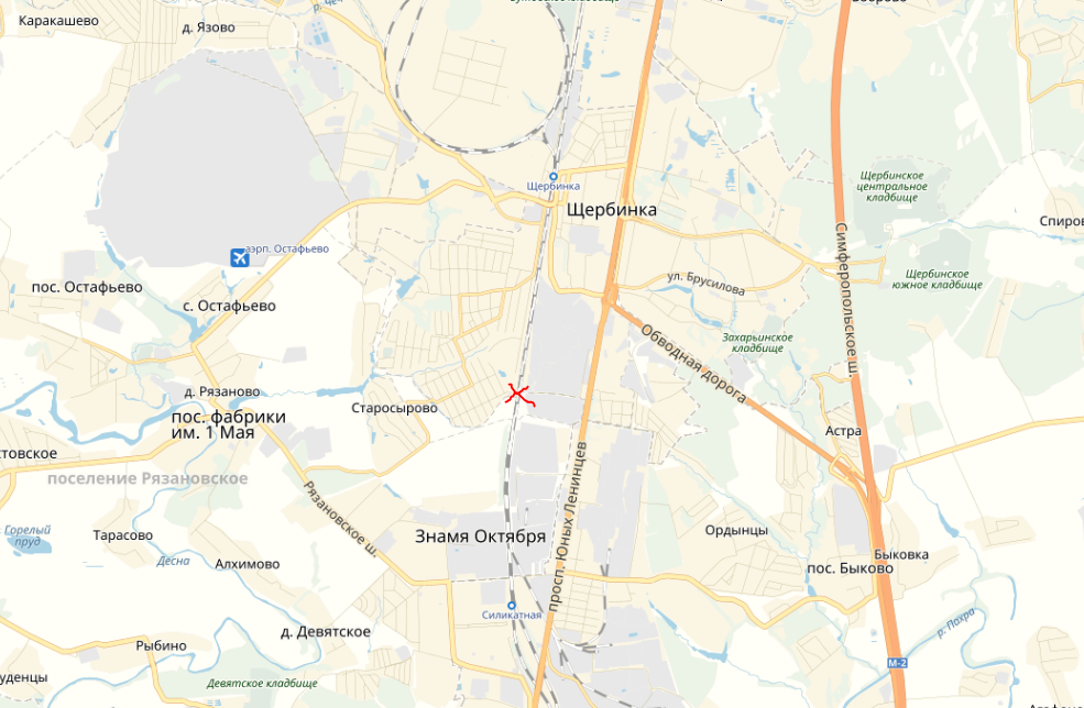 Только непонятно проход для пассажиров из Новосырова Подольска будет ли, всюду преграды: распределительный центр «Подольск» X5 Retail Group (Москва, Рязановское поселение, п. Знамя Октября, Симферопольское шоссе, 20а, стр. 2), Тетрис контейнерный терминал, Симферопольское шоссе, 22, строение 1, Москва