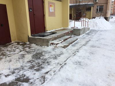 Фото уборки с кучей снега, в которую упирается пандус для колясок, - символ нынешнего Подольска.