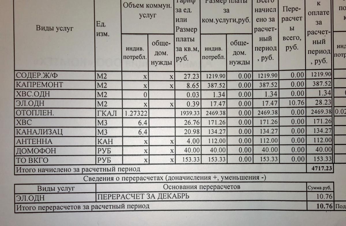 Для начала нужно позвонить в бухгалтерию для уточнения деталей, кстати тарифы на ОДН отличаются в зависимости от этажности дома (до 9 этажей включительно ХВС ОДН -0,04 р., ГВС ОДН- 0,27 р., свыше 9 этажей ХВС ОДН -0,03 р. ГВС ОДН- 0,21 р) и наличия/отсутствия лифта (Эл-во ОДН 2,6 р. и 0,39 р.)Aviator писал(а):Напиши жалобу по этому вопросу в Добродел (раздел Дом, ЖКХ -> Ошибки в начислениях за ЖКУ) и спроси. Что-то ответят.ret писал(а):Данное нововведение с фиксированным тарифом за ОДН будет ли предусматривать перерасчёт оплаты?