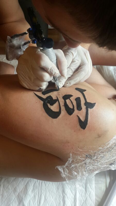 И не все исправить можно. Черт и неровные черные буквы не перебить ни чем. Оправдать молодого мастера может только одно-если он сам себе это набил.