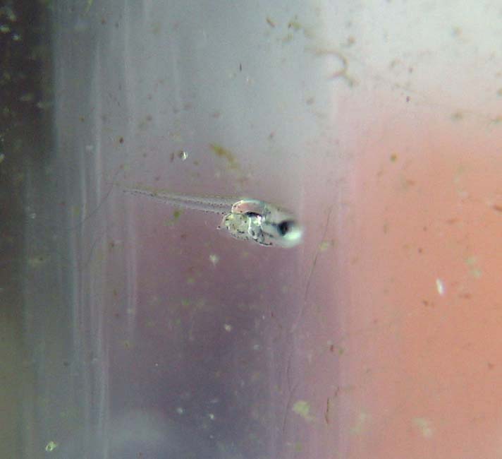 Малявки мои растут! Уже можно не напрягая зрение их спокойно увидеть. Наконец-то научились удирать от сифона и больше никто не попадается в него!! Температура колеблется в пределах 25-28 градусов (25 ночью, 28 днем из-за ламп аквариума, на котором отсадник стоит). Подмены каждый день по 50% воды. Пока кормлю Серой микрон и Аква меню "Малыш". В ближайшие дни планирую соорудить бульбулятор из пластиковых бутылок для артемии. Отхода малька пока не видно (ттт). Аэрация круглые сутки. Я все правильно делаю?