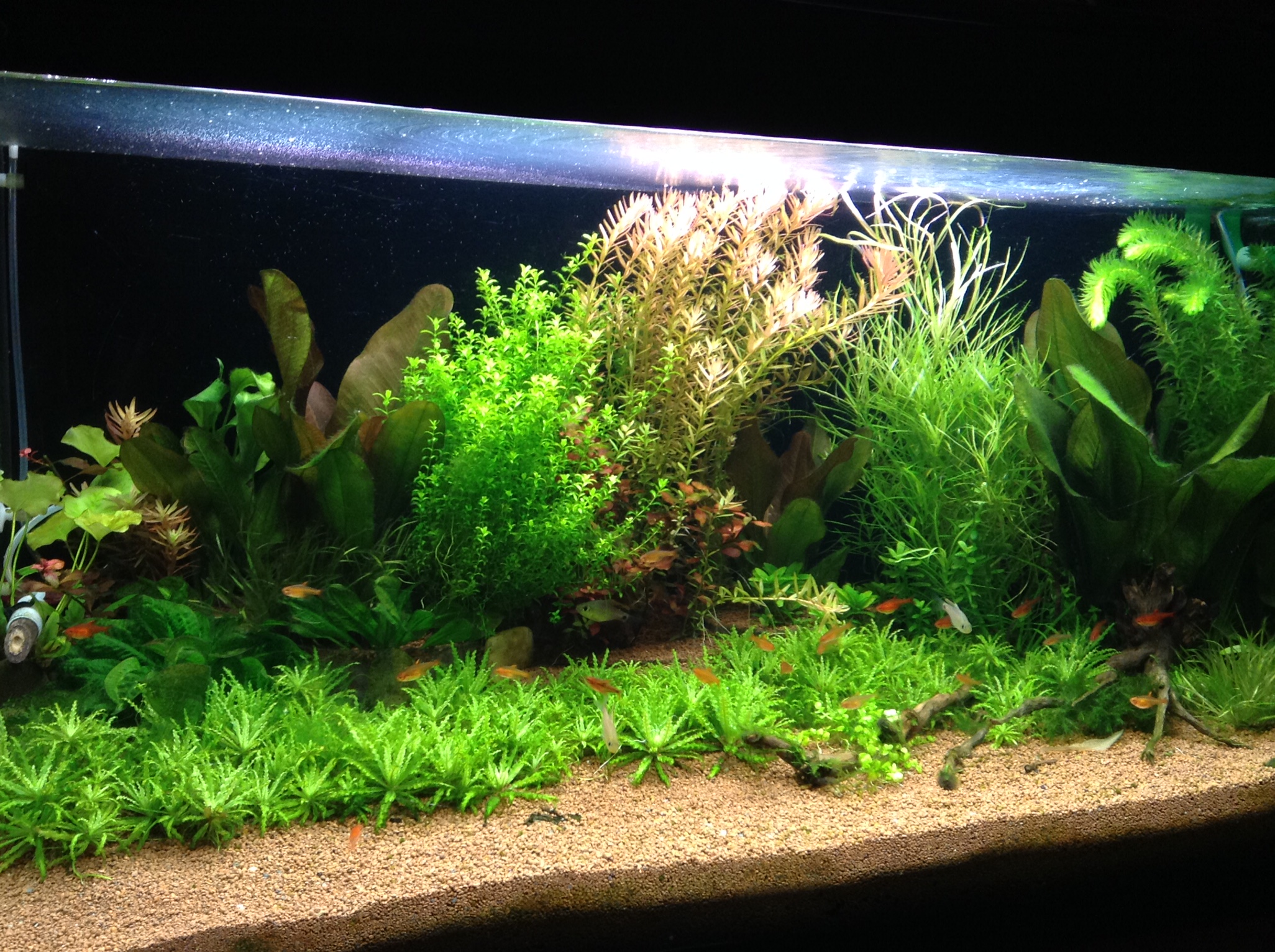 После запуска год прошел, водоросли то одни, то другие появлялись. Какие-то сами ушли, с какими-то пришлось побороться, но как-то без химии справлялась, перекись только в одном случае применяла. А потом появилась кладофора. С грунта и стекол ее еще можно механически убрать, а вот с растений только если с самими растениями.