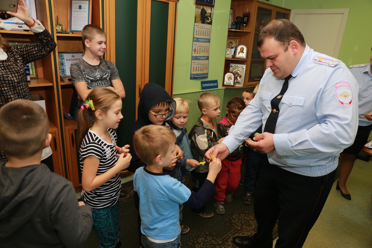 Но самым приятным и неожиданным моментом стала возможность лично встретиться и задать вопросы начальнику Отдела ГИБДД УМВД России по г.о. Подольск Юрию Черепянскому. Дети получили от подполковника полиции в подарок светоотражающие элементы, пообещав всегда носить их на одежде и соблюдать правила дорожного движения.