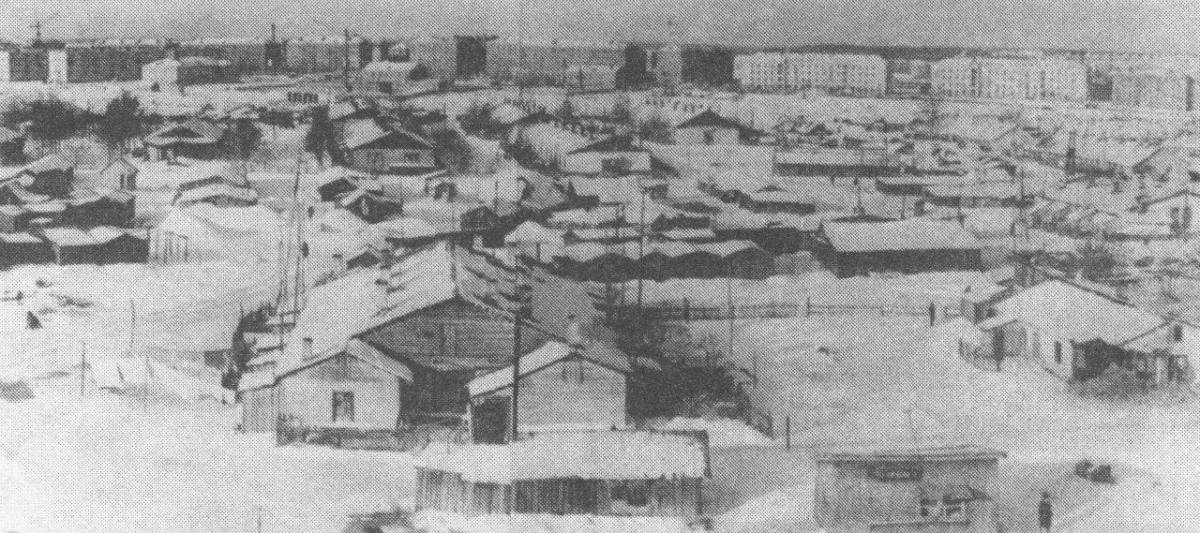 Вот это фото в полном виде, здесь видно улицу Кирова, на заднем плане по центру дом 48, где сейчас Спортмастер, до крайней хрущевки перед роддомом. Видны масштабы барачной застройки, и видно пустырь за ней, видимо это пространство и было заброшенным кладбищем. На предыдущей фото тоже его видно.