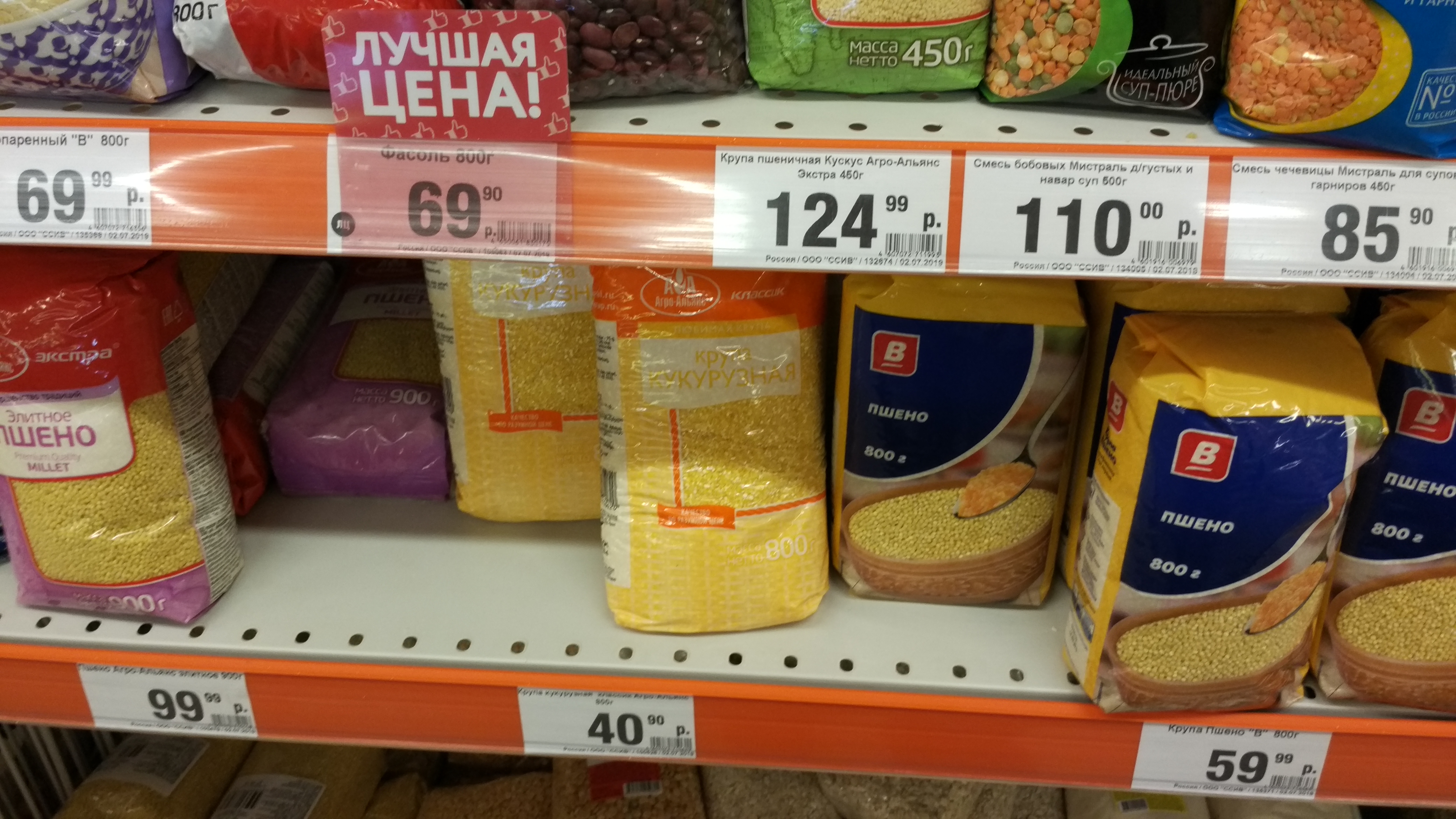 В "Магните" пшено 1-го сорта 54 руб. за 0,8кг.
