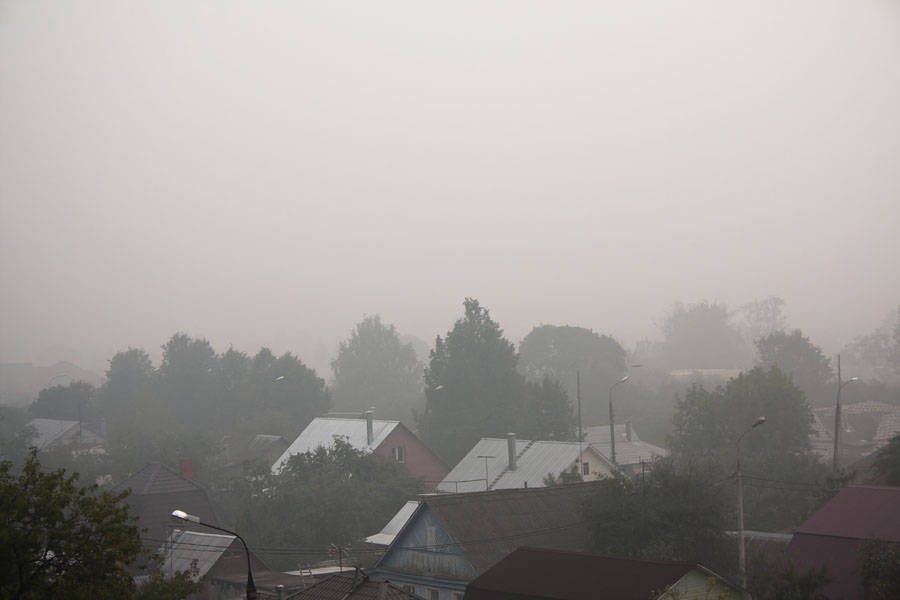 поразило, что юго-восточней в 100 км от Москвы, вчера вообще смога не было...