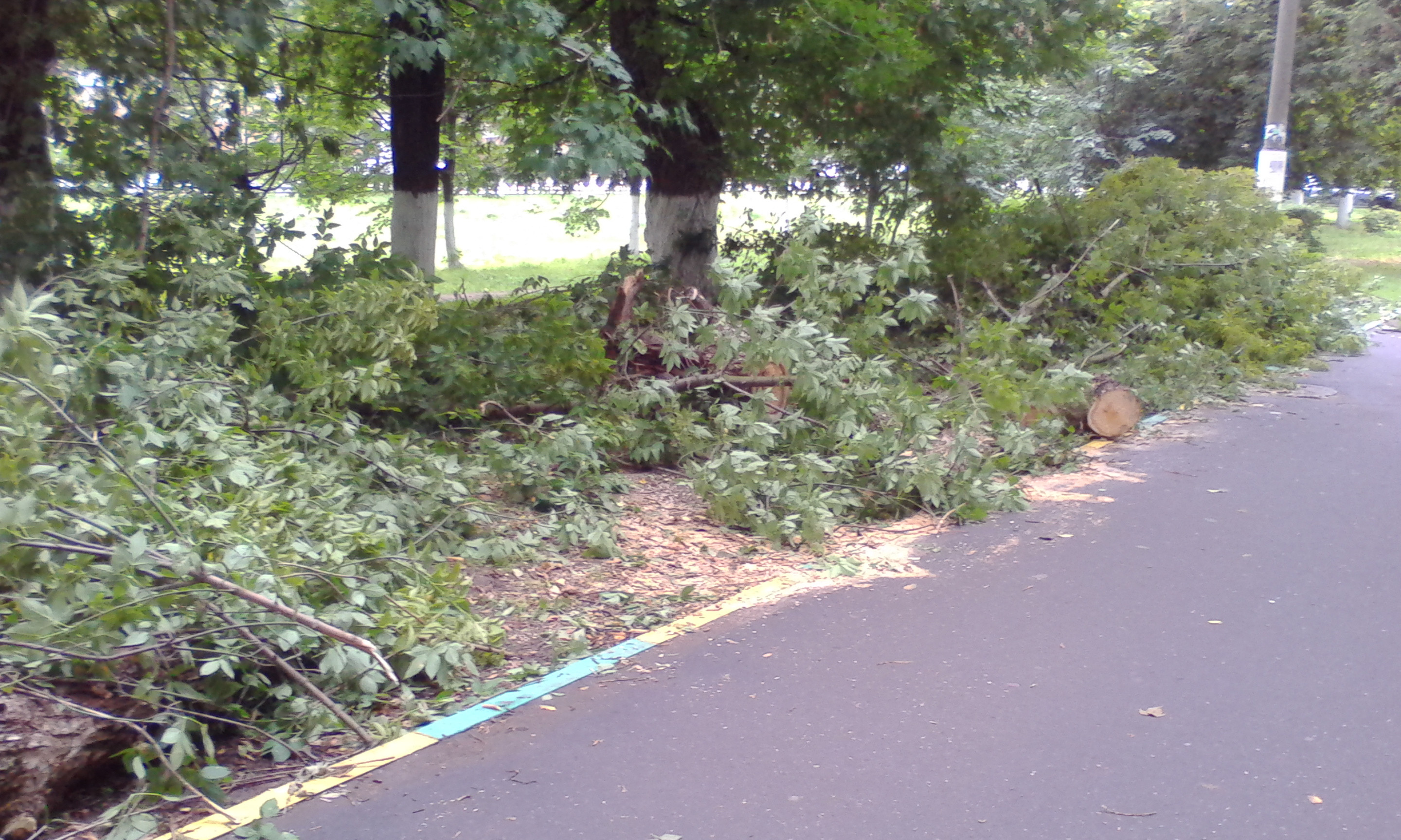 Даже после урагана под шумок не могут спилить аварийное, но устоявшее безобразие.