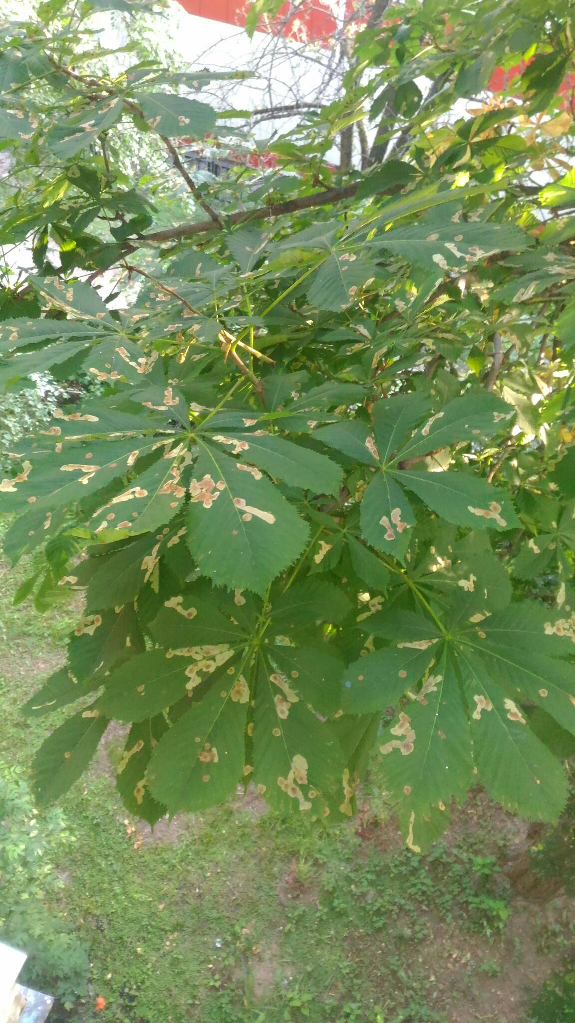 Добрый день!Рядом с маг.Магнит растет высокий красивый каштан, но в этом году его испортили вредители,дерево в ужасном состоянии,на листьях следы от вредителей,листья в середине дерева уже желтеют.Спасите дерево!