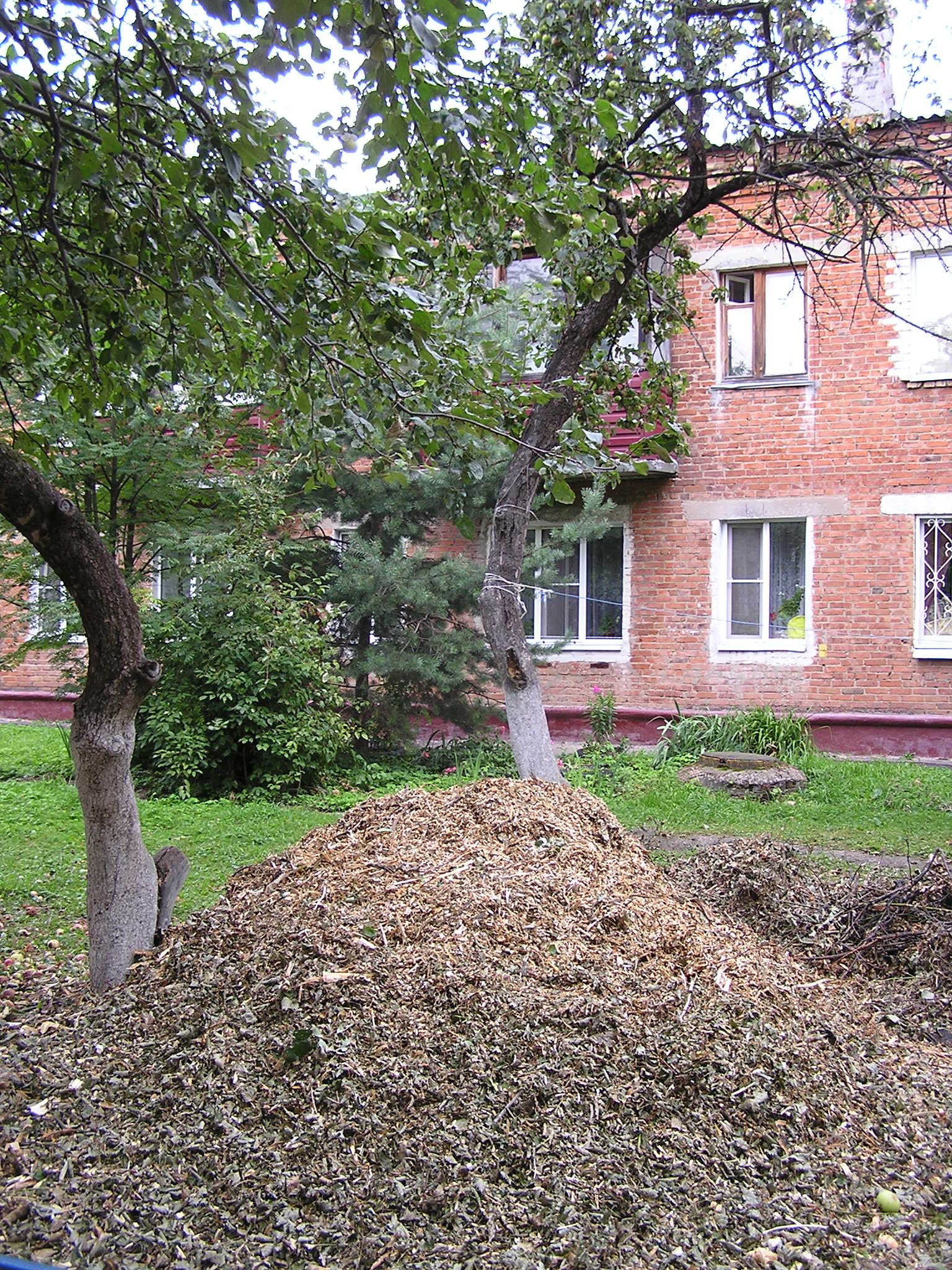 хотабыч, хилой травке не пробиться сквозь толстый слой щепок, она может расти только сверху них.