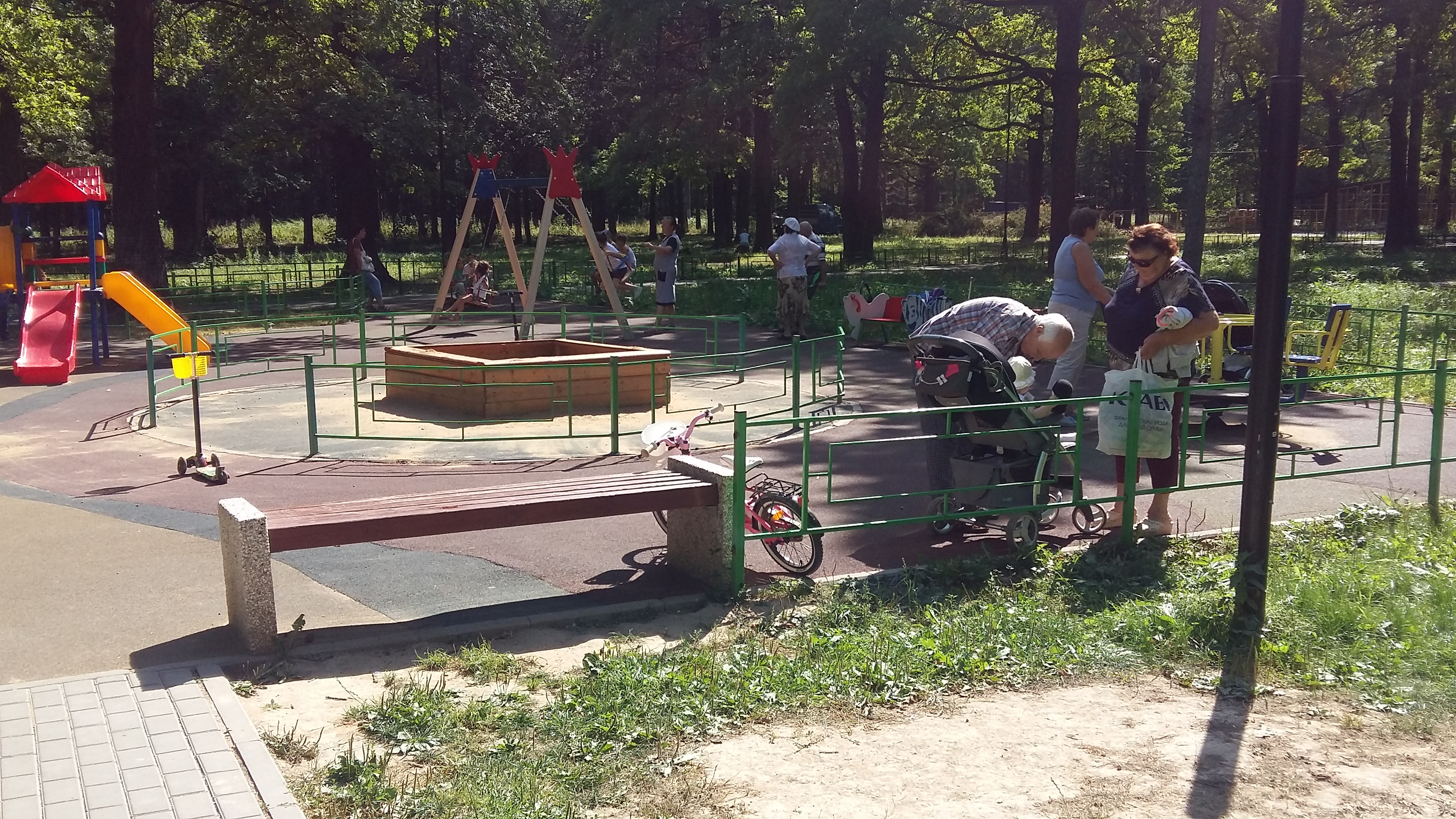 В сквере у церкви в новостройках (Бородинский бульвар) - ни одного дерева, хилые какие-то прутики. И скамейки по периметру полувысохшего газона. Рядом - детская площадка. Очень "продуманное" благоустройство, ничего не скажешь. Мамочки с колясками под палящим солнцем вынуждены гулять с малышней.