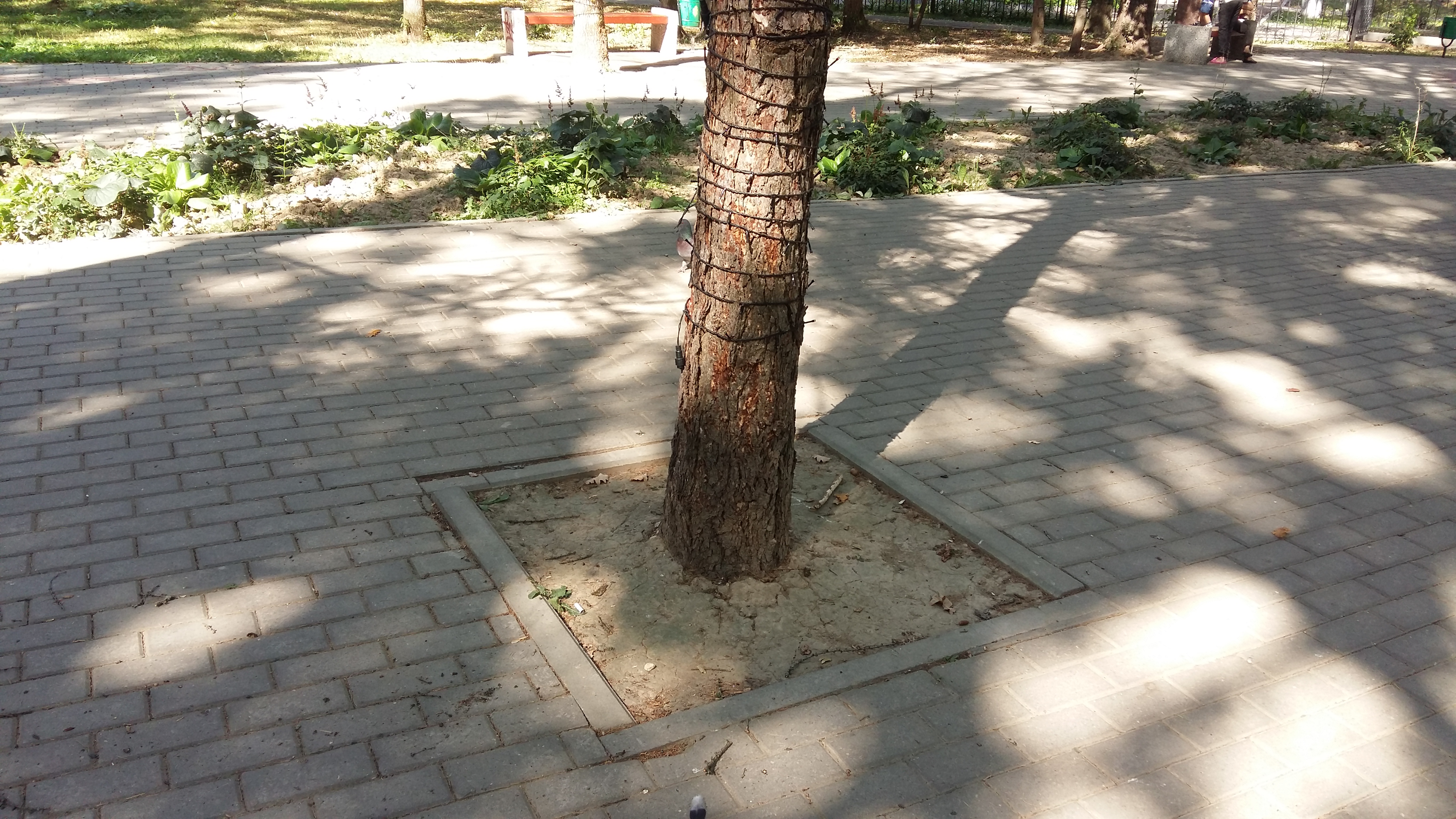Газон лыс. Зато всё побелено.