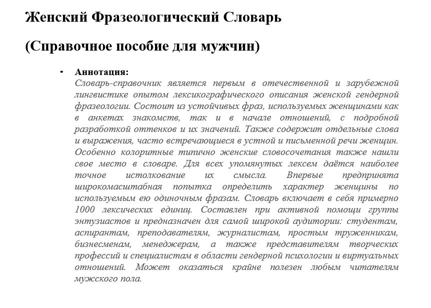 Вроде зрение не подводило ,но тут елыпалыZaxarov писал(а):Женский фразеологический словарь